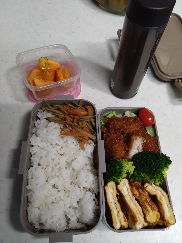 いつもの甘辛チキンカツ弁当にきんぴらもプラス。