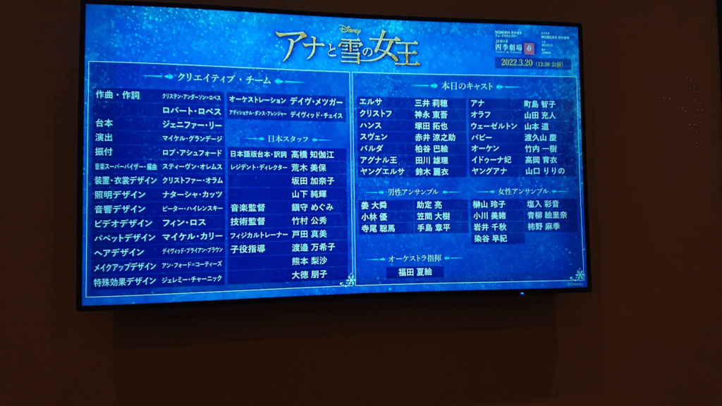 パンフレットを買ったら電光掲示板の本日のキャストを写真にとっておくのもおすすめです。