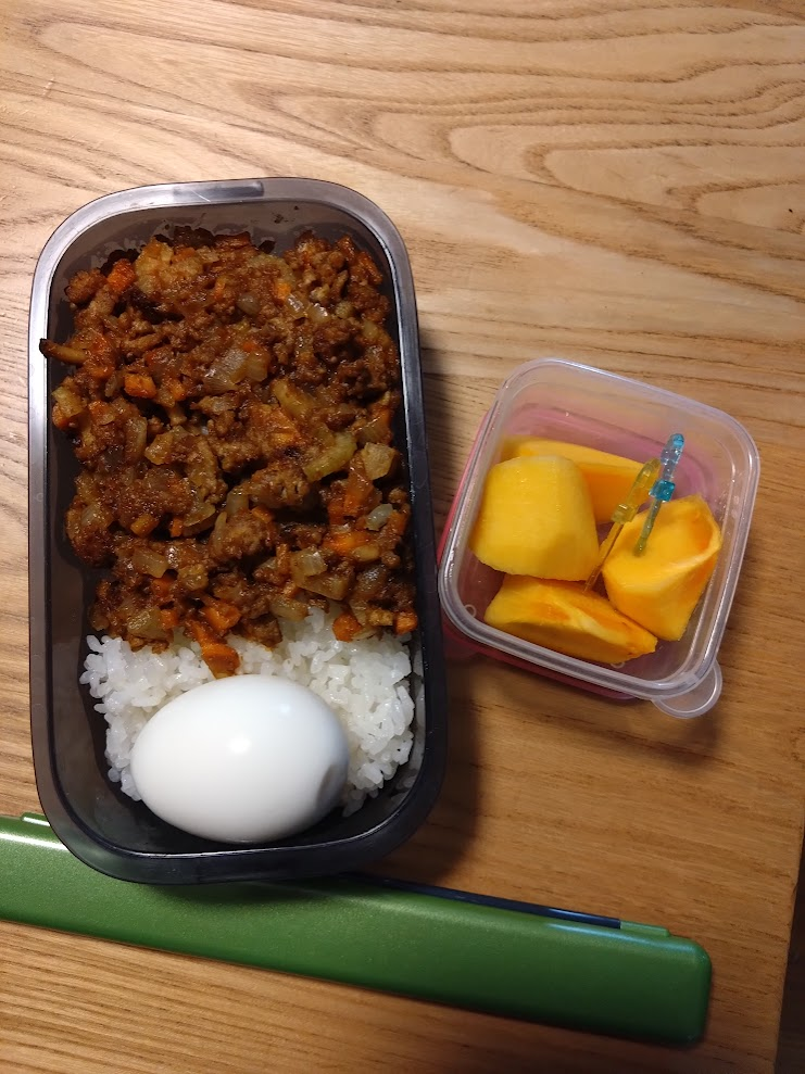 For dessert, I added a slice of sweet, juicy persimmon, perfectly in season right now. The bright orange color adds a cheerful touch to the lunch box.